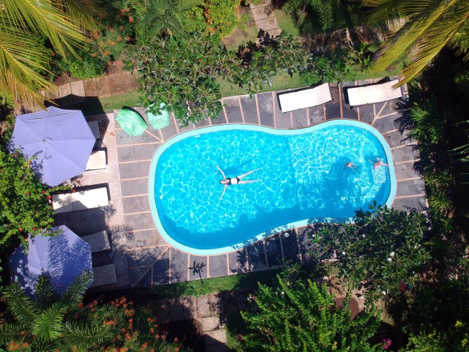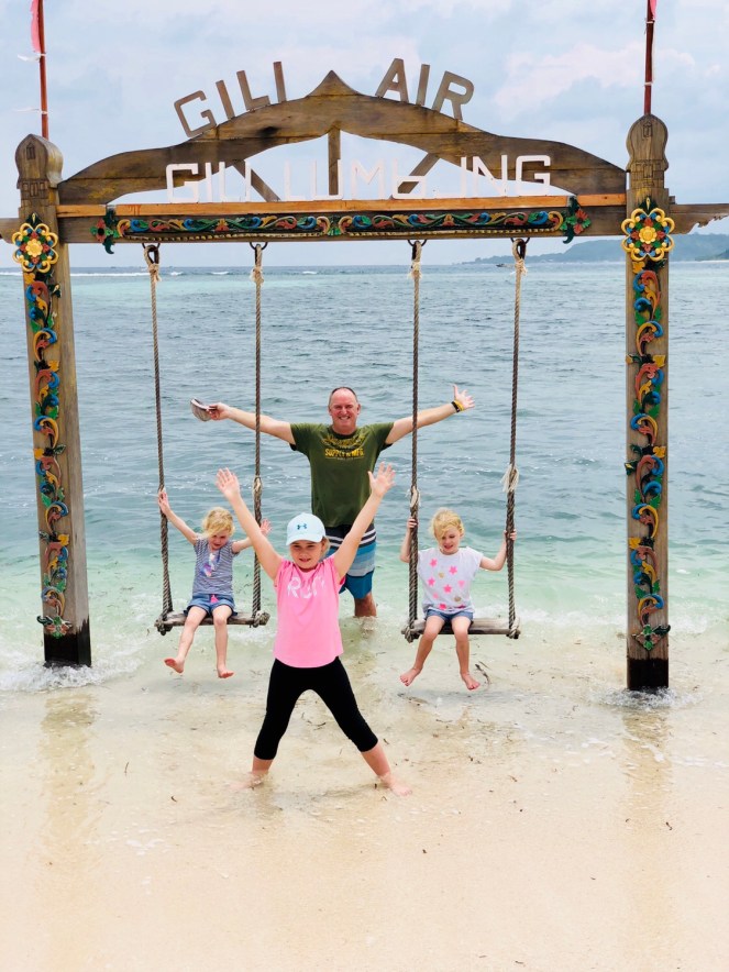 Leaving Bali wasn’t easy. Especially knowing that we were leaving behind family, hot water and room service. We also opted to fly rather than take the fast boat across ( mainly because boats and I don’t always mix) to Gili Air. This meant that we stayed overnight in a town in Lombok called Senggigi. We booked home-stay type accommodation and were picked up from the airport by Steph, the owner of the home-stay. During the car ride our very accomodating host overheard Brooke complaining about how hungry she was and decided to take us to lunch so we could try a traditional Lombok meal called ‘nasi balap’; which from what we could gather was rice, spicy coconut, peanuts and beans. The girls had pretty much lived off hot chips and spaghetti so naturally I was concerned about how we were going to navigate this politely. Lombok is known for its chillies and spicy food, our kids don’t do spicy. Thankfully Maya ate a respectable amount of her meal telling Steph how delicious it was. Phew! Brooke ate nothing of course.