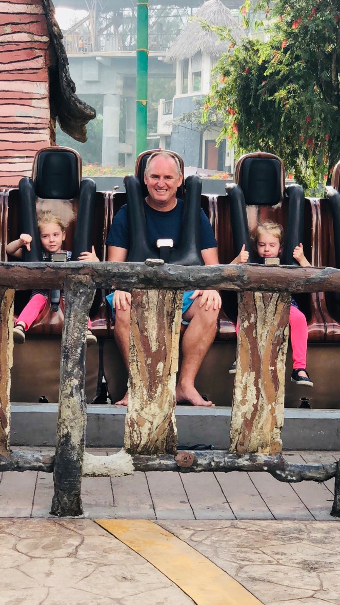 Bukit Lawang was literally like a breath of fresh air when we arrived. We stayed on top of a river which was beautiful, amazing and SO loud. Murray and I woke up during the night thinking it was thundering down with rain only to discover it was the noise of the river. We could sit on our veranda for hours and watch the monkeys playing in the river and it felt like the furthest place from Sydney on the face of the earth. We swam in the river, went for walks and enjoyed the isolation. On day 3 we bravely signed up for a jungle trek in the hope that we would see some orangutans in the wild. We were not disappointed. The jungle trek was one of the best and most memorable days so far. Admittedly the first half hour of the trek was a bit dicey. We climbed up a mountain edge that literally dropped off at points with no barrier. I could see the look in Murray’s eye ( it basically said – wtf are we doing here.. and with our kids??). Before the jungle trek Murray had Jokingly said “if we don’t see an orangutan I’m going to get one of the guides to dress up as an orangutan and jump around”… ha ha, funny right? … well maybe not so funny for him when I heard Maya tell the guide “my dad said that if we don’t see an orangutan…” Hilarious.