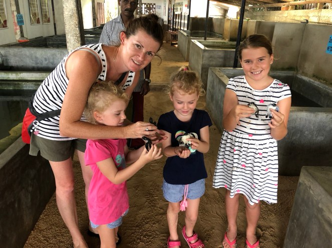 Unawatuna, however, offers an unforgettable experience to visitors, and that is a trip to a turtle hatchery. There are plenty to choose from and they are home to a lot of injured or disabled turtles as well as babies. Fishermen collect the turtle eggs and bring them to the hatcheries. The eggs are buried in protected sand pits. One turtle can lay up to 150 eggs. Once the turtles hatch they are kept in the hatchery for 3 days to build some strength then released back into the ocean. We were lucky enough to see 1 day old hatchlings and release some 3 days old babies back into the ocean. Sri Lanka is a very ‘hands-on’ country. You are encouraged to get involved, touch, see and involve yourself in everything. We experienced this at tea factories where the kids were encouraged to feel the tea that was being processed for commercial production and at this particular hatchery. We basically carried our tiny turtles ( named Sandy, Shelly , Shelly, Rip-tide and Survivor) to the beach and let them go. There were no rules, no supervision, just us and the baby turtles. It was an amazing experience and one we will never forget. We hope our little turtles are some of the lucky ones who survive until adulthood and come back in 30 years to lay their own turtle eggs.