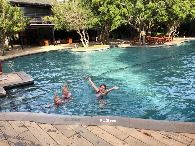 The next morning we went for a stroll around the resort and noticed all of the animal poo on the paths. Some were alarmingly large. On the beach we also noticed a large amount of animal poo. Unfortunately Murray noticed one animal pat a little too late which the girls found hilarious. We also booked a safari and set out at the crack of dawn in a Jeep to hopefully get a closer look at some of these animals. Within the first 15 minuets we were literally stopped in our tracks as a family of elephants crossed the dirt track in front of us. We were close enough that we could almost touch them. The safari guide didn’t seem too alarmed- they were a bunch of females with a baby. Apparently quite safe. A short while later we came across a male ‘tusker’. Apparently this was cause for concern as male tuskers are typically aggressive. Our guide kept a good distance and asked us to pass all belongings into the lockable front part of the Jeep. This sounded like a good idea until I realised that the guide himself would be safely locked in his safe compartment while the rest of us were unsafely hanging out in the open back section. Another few jeeps had also arrived on the scene and unfortunately for one, theirs got a little too close to the tusker who decided that he was going to have a poke around in their back section, while they could only hope he didn’t take too much of disliking to them personally. Luckily all ended well and no humans were harmed. We were considering ourselves pretty lucky at this point to have come across elephants, come face to face with a male tusker, spotted mongooses, toucans , water buffalo, deer, crocodiles and wild boar. The ‘big’ sighting of the day however was waiting for us on a lone stretch of dirt road, the leopard. We were told that it was rare to see a leopard however I am convinced that this big cat could sense a fellow cat lover ( or a Jeep full in our case). Our guide drove straight past it until I shouted out ‘leopard ‘ and sure enough it was sitting in the brush waiting for us. I was so shocked I nearly forgot about my camera until it sauntered behind our vehicle and disappeared. It was bright orange and black, big, majestic and just gorgeous. Being a cat- loving family we were all thrilled to have been in the presence of this magnificent creature. We joked about bringing it home and wondered if our Teddy Bear would still be top-cat. Hmmm , probably not! We finished the safari off by watching about a dozen elephants frolicking and bathing in a water hole. They are quite agile for a large animal, rolling around and playing with each other.